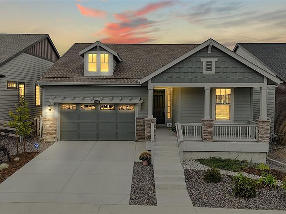 Find your home in Prospect Village at Sterling Ranch nestled at the base of the foothills in Littleton..  This fabulous home is located inside Prospect Village with a very private lot.  No neighbors on the back only a quiet walking Path and Green Belt.  Home was built in 2022 and has been gently lived in and well cared for. From the moment you walk into the home you feel the well designed space with Wide hall way and tall ceilings. The Ideal main floor living space has wonderful open floor plan that showcases a Primary Suite including wonderful primary bath with oversized shower and massive walk in closet.  Want convenience? You will find that the Primary closet connects to the Laundry room including washer and dryer!  You have Two additional ample sized bedrooms and secondary/guest bath.  You are going to love the open Kitchen with the oversized island and beautiful quartz countertops, Gas Stove/Oven, Walk-In Pantry, Coffee Bar and Stainless Steel Appliances. Nice sized eating space right off the kitchen with ample room for you and your guests.  Your comfortable living room with gas fireplace is ready and waiting for you to Snuggle up and relax with No neighbors behind. Want additional space you have 1850 sq ft of space in the Open Basement.  Back yard has a great covered deck that travels the length of the home.  Room for BBQ and to entertain.  Don’t be a slave to yard work, the Small yard feels much bigger since it backs to the Greenbelt. Want to enjoy the outdoors, Sterling Ranch is the place to be. Minutes to shopping and restaurants, 5 minutes to Chatfield State Park and Roxborough State Park. Village community center with an Outdoor pool, fitness center, clubhouse and monthly events.  1 Block away to the soon to be finished Prospect Village park. Better than new and ready to go.  All the fine details have been worked out.  Wonderful neighbors and community.  Don’t miss this chance.