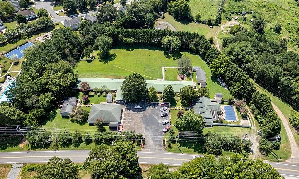 Exceptional opportunity to own 3.5 fully fenced acres in a prime location, currently utilized as a 501(c)(3) nonprofit. This unique property includes multiple buildings and is ideally suited for another nonprofit organization, church camp, or retreat center. Ample parking is located at the front of the property. The well-manicured grounds feature several specialty shops including a boutique (with monitored alarm), children’s shop, and thrift store, along with a large, multi-functional ministry building. The ministry and retail shops have motion detection lights. Inside the ministry building you'll find individual rooms, communal bathrooms, laundry facilities, a full kitchen, spacious living area, chapel with office, and a designated area with teaching cubicles. A private apartment offers a living space with a bedroom, bathroom, and living area. Additional amenities include multiple food storage rooms, two commercial freezers, and multiple outbuildings including a workshop and greenhouse. A beautiful permanent residence sits at the heart of the property, boasting a wraparound porch, 3 bedrooms, 2 full baths, a large kitchen, and a sunroom with a hot tub. Just behind the home is a large inground pool. A well-maintained 3-bedroom, 2-bath mobile home is also located on the property, perfect for staff housing or guest accommodations. The rear acreage offers level green space and a playground, making it ideal for gatherings and recreation, or future expansion. This one-of-a-kind property offers endless potential for those seeking a mission-based or community-oriented setting. Don't wait--come see this beautiful property today!
