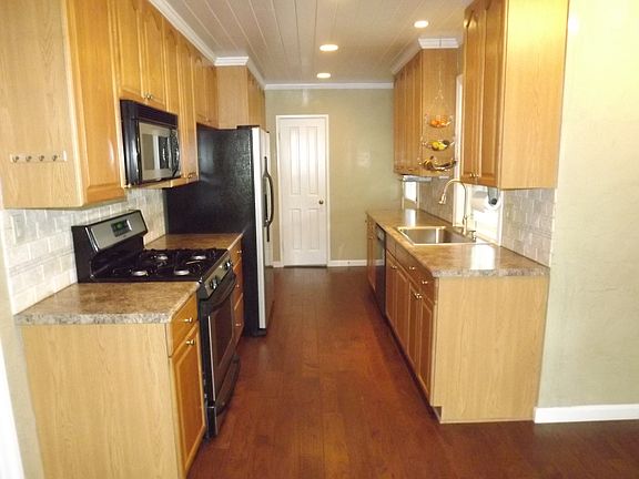 Beautifully crafted 3 beds /2 full "custom" bath home on a 7,801 sqft lot. Consists of a spacious living room, dining area and with hardwoods throughout. The Galley style kitchen is upgraded with stainless steel appliances. Get cozy in front of the living room fireplace while enjoying the fully wired for gaming entertainment wall. Unique entertainer's back yard with a kitchenette area next to a gated carport. Hot tub included next to Pool. Perfect for get-togethers with friends and family while enjoying music through speakers wired inside and outside the house. 8 security cameras wired and ready for piece of mind. Storage shed area is plentiful! The large driveway with open accessibility means lots of parking space (RV accessible) . This well taken care of, picturesque home is definitely A MUST-SEE!