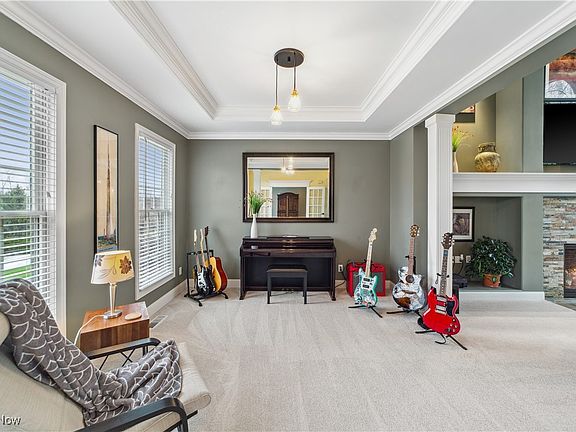 Nestled in the highly sought-after Laurel Springs community, this meticulously maintained 4-bed, 2.5-bath home is a true gem! As you step through the front door, you’ll be captivated by the soaring ceilings, floor-to-ceiling windows, and a spacious open-concept layout that is elegant and inviting. The entry opens to a sitting area/den, perfect for greeting guests or relaxing. The space flows effortlessly into a welcoming living room, complete with a gas fireplace and large windows that fill the space with natural light—an ideal setting for hosting and quiet evenings alike. Just off the living room is the heart of the home: a chef’s kitchen featuring a commercial-grade gas cooktop, granite countertops, island, ample cabinetry, and stainless steel appliances. An eat-in dining area offers a tranquil view and the perfect spot to enjoy your coffee. Arched doorways lead to a spacious room that can function as an office or transition into a dining room, depending on your needs. The main floor also includes a half bath, laundry room, and mudroom for added functionality. Upstairs, retreat to a luxurious primary suite with serene backyard views and space to create your dream bedroom escape. A renovated ensuite bathroom (2025) boasts a glass-enclosed shower, tub, and double vanity, while the walk-in closet includes custom built-in storage. Three additional generously sized bedrooms and a full bath round out the upper level. The lower level is an entertainer’s dream—featuring a stunning custom bar area complete with a wine fridge and beverage cooler, a media room, game area, exercise room, and additional bonus space for flexibility. Outside, enjoy a beautifully maintained backyard with a deck perfect for entertaining and room to relax or play. A 3-car garage provides plenty of storage. This home offers the perfect blend of comfort, luxury, and location—all within a welcoming community and Kenston School District. Don’t miss your opportunity to make this your dream home!
