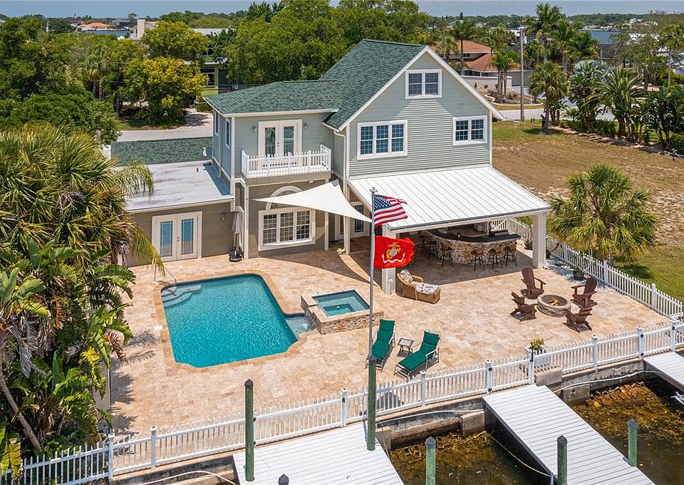 Coastal Waterfront Oasis with Million Dollar Sunrise and Sunset Views. Indulge in this rare Cotee River home with unobstructed Gulf of Mexico access. Exquisitely Updated Open Floor Plan had No Expense Spared. Enter through the beveled glass door which sheds light onto the rustic plank - tile floors which carry your eye past the gourmet kitchen to the view of the waterfront. You will immediately notice the cathedral ceilings opening the kitchen to the beveled glass clerestory window and an entire wall of classic windows in the breakfast nook overlooking the Riverfront. All custom high - low cabinets with stunning Bella Oro Granite is a gourmet cooks dream. Bosch Stainless Steel Appliances. Built in Microwave-Oven, and Dishwasher with cabinet front. White soft close cabinets with lift appliance cabinet, full pull outs throughout the kitchen, including the pantry. French doors lead out to the 5 star resort style backyard. Travertine paved backyard has a fully equipped outdoor kitchen and large bar area. The kitchen area has chiseled stone and leather finish granite counter tops. The saltwater pool with spill over heated spa were completely redone 5 years ago. The firepit is great on chilly nights. There is 75' of riverfront with newer dock with Deck-Top PVC covering, 15,000 lb. boatlift, additional slip and separate floating dock. 2014 elevation certificate shows flood zone AE. Minutes out to the Gulf of Mexico with no bridges. Minutes to 6 Riverfront restaurants. Coming back inside to the family room which features a gas fireplace clad in chiseled stone floor to ceiling. The formal dining room has a custom built wine cellar. There are 3 bedrooms on the ground floor, a full bath and a half bath. The TV room could be used as an office or could easily be converted into a mother in law suite with its separate entrance. The stairway to the second floor owners suite has a stunning custom made wrought iron handrail. There is also an elevator to the 2nd floor owners suite. There are water views from every window, french doors lead out to private deck with phenomenal water views. The bathroom has granite and travertine finishes, double sinks, commode room, walk in shower and jacuzzi tub have beautiful view of the river. Large walk in closet. Outside the owners suite there is a stairway to the third floor gym / office / library, and as expected, more water views. Other features of the home include inside laundry room, crown molding, architectural doors, architectural framed windows which are all high impact, stainless steel storage in the garage and the list goes on and on. Roof is 3 years old. Exterior paint 2019. 10 minutes to historic downtown New Port Richey with restaurants, micro breweries, shops and entertainment. Effective Year Built 2004. THIS ONE IS A RARE PROPERTY!!!!
