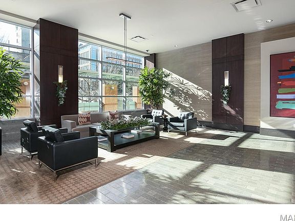 Discover the epitome of luxury living in Clayton's prestigious Maryland Walk high-rise condominium. Perfectly situated in the heart of downtown Clayton, this elegant 10th-floor residence places you just steps away from a vibrant array of dining, shopping, and grocery options. Spanning 2,414 square feet, this sophisticated 3-bedroom, 3-bathroom condo is bathed in natural light through expansive windows. The custom-designed Primary Suite is a serene retreat, complete with a luxurious bathroom featuring dual vanities, two separate water closets, a jetted tub, and a full-length custom closet. The gourmet kitchen is a culinary delight, equipped with top-of-the-line Viking appliances, including a four-burner gas cooktop, dishwasher, wall oven, and convection microwave. A Samsung double-door refrigerator/freezer and a new washer/dryer set in the nearby laundry/utility room further enhance convenience. For added privacy, the residence offers a second bedroom suite, a versatile third bedroom/office, and a full hall bath. The open-concept design seamlessly integrates the kitchen, dining, and living areas, extending to a generous balcony with stunning south, east (the Arch), and west-facing views of Clayton. Maryland Walk residents enjoy exclusive amenities, including guest suites, a fitness center, a communal pool, and a spacious top-floor entertainment area. With two-car parking, this residence perfectly blends style and comfort, offering a truly exceptional living experience.