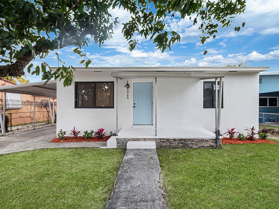 Beautifully renovated 3 bedroom 1 bathroom home in Miami. This home features new floors, kitchen, bathroom, impact windows and doors all nestled on a 4,650 square foot lot. Great slab driveway in the front leads to a spacious aluminum carport to protect the owners vehicle. Driveway fits several vehicles!