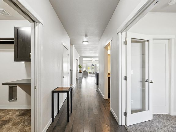 Welcome to this beautiful home, boasting an open floor plan w/ seamless living spaces & high-end finishes. The inviting living room features a cozy gas fireplace. The heart of the home, the kitchen, is a chef’s dream, with a spacious island, breakfast bar, quartz countertops, SS appliances, gas range, and pantry. The main level is home to the luxurious primary suite, offering privacy and comfort with a private patio walk-out, spa-like tile shower, and a generous walk-in closet. A guest suite is also on the main floor, complete with its own full bathroom—ideal for visitors or multi-generational living. A tech room/office provides the perfect space for working from home or organizing your life. Upstairs, you'll find two more spacious bedrooms and a full bathroom. A corner lot provides both privacy and space with full vinyl fencing, covered patio and permanent holiday lights. The garage is equipped with epoxy flooring, EV charger & water softener. There is also a RO System. Access to a community pool and park!
