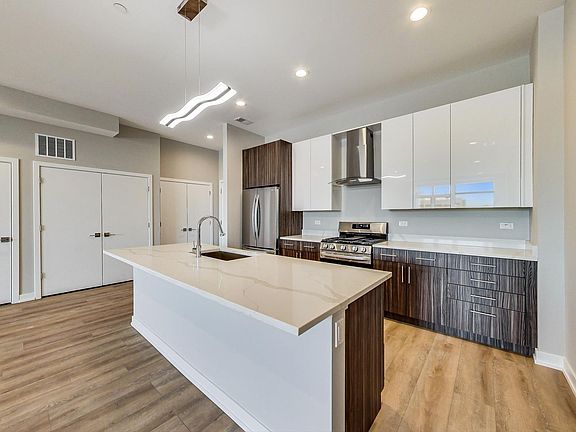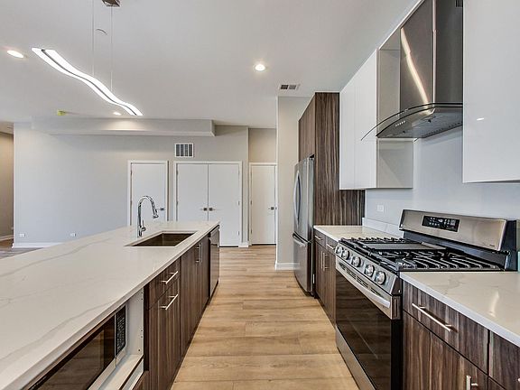 Welcome to your new home at 8025 Skokie The BLVD; a 40-unit boutique luxury rental building nestled perfectly within a stone's throw of historic downtown Skokie! This 2 bed / 2 bath residence features condo quality finishes including a chef's kitchen with Calacatta quartz island/countertops, high-end LG stainless steel appliance package, and custom built-in European style cabinetry. Luxury vinyl laminate flooring throughout with porcelain tile in bathrooms. Ample size primary bedroom with walk-in closet, in-unit washer/dryer, and private balcony. Building amenities include elevator, heated attached garage parking, storage, mail/package room, and common rooftop deck with views of Chicago's downtown skyline. Access the Skokie Swift right outside your front door for a quick and convenient commute into the city! Walking distance to many local neighborhood convenient stores, shops, and restaurants!