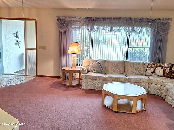 'PRICE REDUCED 25,000!!' CURB APPEAL PLUS! Southern Spring Hill Area! Home sits on a 1/4 Acre lot on a very peaceful block of upscale homes. You are sure to love the Soaring Cathedral Ceilings opening to a Great Room. Triple Sliding Doors that easily glide into the wall allowing the house to become a giant entertainment area! 30 x10 foot Glass Enclosed Florida Room with Marble Sills and 3ft tall Block Walls can be used year round! Very Private huge Back Yard! Inside there are Wood Cabinets and High Ceilings in the Kitchen, Large Island-like space with Breakfast Bar looking into the Living Area. All furniture can stay or be removed. There are Split Bedrooms and Lovely New Blinds and Window Treatments. Primary Suite has Sliding Door to the Florida Room, an En Suite Bathroom with Shower and Double Sinks, Linen Cabinet and Big Cedar Walk in Closet! Bedroom 2 on the other side of the house is like a private Second Suite! Natural Wood Trim on all woodwork, Inside Laundry with Appliances, Big 2 Car Garage with Workbench and Cabinets. The house has it all! NEW ROOF IN 2020, NEW A/C IN 2023. Come see this doll house today!