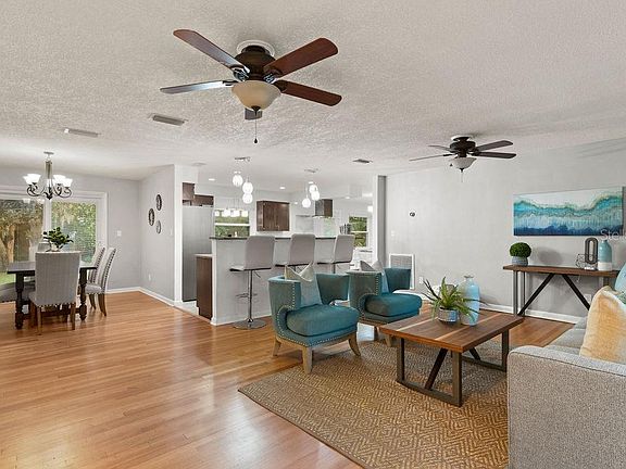 Welcome home to this beautiful, updated, solar powered home located on a sprawling .98 acre lot just minutes to Winter Park, Trinity Prep, UCF and so much more. When entering the home you are welcomed by a stunning stone feature entryway, a wood burning fire place, a large picture window and gorgeous recently refinished hard wood floors. The open concept kitchen, living and dining room, make this the perfect entertaining home. You will love enjoying meals in the dining room while looking out the new sliding glass doors at the gorgeous backyard. The oversized kitchen features ample storage, new appliances, a beautiful stone island with bar seating, and an eat in kitchen area with brand new built in cabinets. The master suite has hard wood floors, a brand new updated master bath with a large walk in shower, new tile, vanities and fixtures. Other features include, but are not limited to, a $0 electric bill due to the paid off solar panels, brand new windows throughout, new electric panel, new meter, new light fixtures, full size laundry room, a newer AC and the home has been fully repiped. Enjoy the Florida lifestyle beneath the tree’s in your private, massive, fully fenced backyard. This wonderful home is ready for new owners, schedule your showing today!
