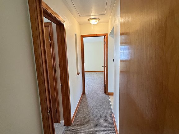 The garage is connected to the duplex by a covered walkway. There is one space available in the garage and one in the driveway.