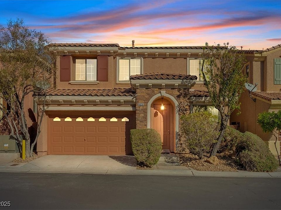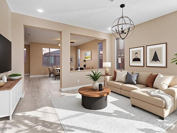 OPEN HOUSE (Nov 3,4,6,7 from 2-5pm). Welcome home to this turn-key gem in a small gated community in Mountains Edge! This 4 bdrm, 2.5 bath, 1875 sq ft home features an open floor plan w/ a spacious kitchen offering corian countertops, stainless steel appliances, a center island & a convenient coffee bar/desk area. Downstairs offers 2 large living spaces for flexibility! The generous upstairs primary suite is separate from the others, includes 3 closets w/ an en suite featuring dual sinks, a soaking tub & separate shower. Step outside to a cozy backyard with a covered patio, or take advantage of community trail access leading to nearby Exploration Peak Park. Ceiling fans throughout keep the home comfortable year-round. Enjoy added convenience w/ a walk-in storage closet downstairs, an upstairs laundry room w/ cabinets & counter space (washer/dryer included), and a 2-car garage. Close to shopping, restaurants, hiking, and recreation, this house is truly a must-see. WELCOME HOME!