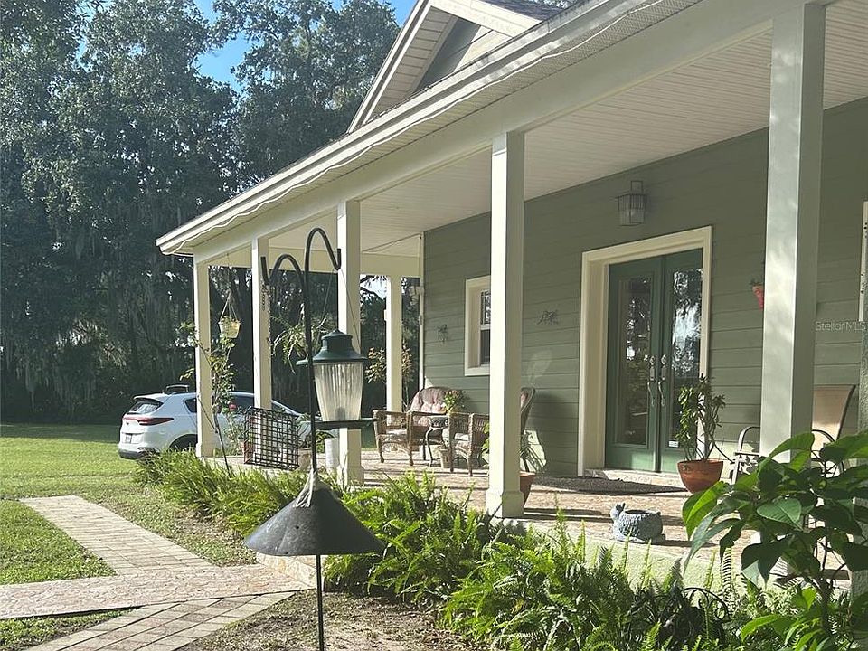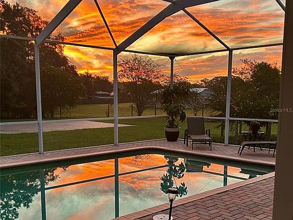 Unique custom built, multifamily 2900 sq. ft. home with two complete kitchens, just under three acres in Land O Lakes, Fl. Rural private setting less than 20 minutes to I-75, 3 minutes to state road 41, an additional 20 to I-275. This is a 4 bedroom, 3 full bath, caged pool home with covered porches front and back. The property is surrounded with mature oaks, fenced, and the Lake borders the entire west side. Large master suite access to front porch, pool deck and office/den which also opens to foyer. Private entrance to 3 of the bedrooms, one bath, kitchen and living area. This area can be used as a private apartment or accessed through living area of house. Large shed with 3 extra rooms can be converted to horse stalls or garage. Concrete half basketball court behind pool and house. Possible one acre split per Pasco County .