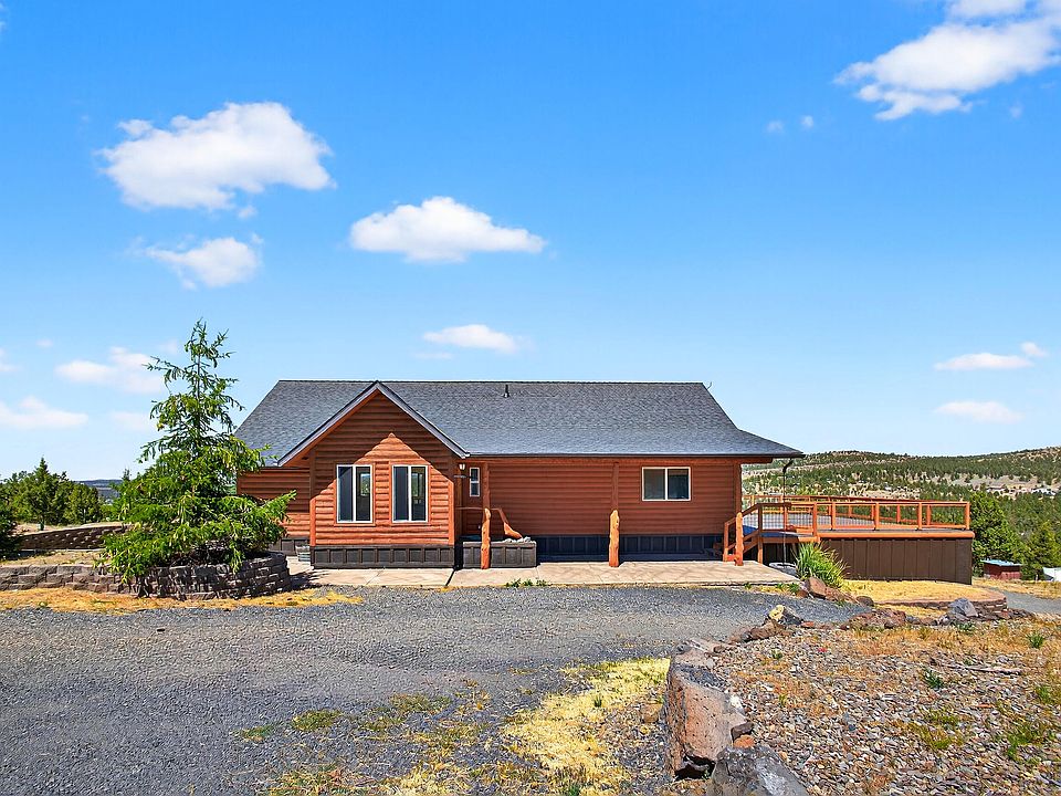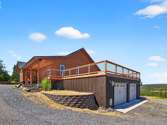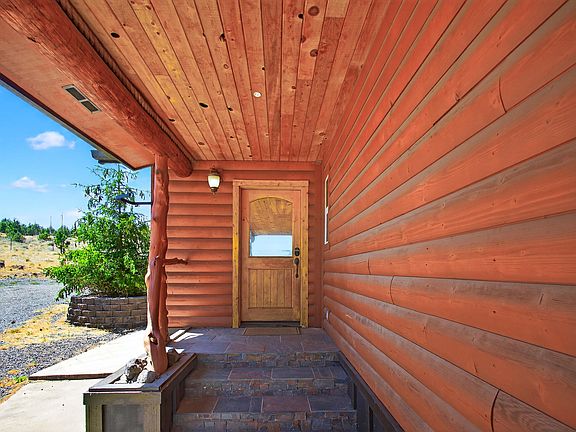 Nestled on nearly 2 acres with breathtaking views, this charming home offers a perfect blend of rustic elegance and modern convenience. Situated near the reservoir, BLM land, and trails for hiking and biking, it's an outdoor enthusiast's dream. Inside, the home showcases beautiful live-edge wood accents, a jetted tub, a pellet stove, and an electric fireplace in the primary bedroom. The water softener system adds comfort. The spacious finished basement includes a bonus room, storage area, and utility space. Radiant heat is installed throughout the home and on the exterior walkway, ensuring warmth year-round. The wraparound driveway provides ample parking. Enjoy outdoor living on the back patio, expansive Trex deck, and in the large shop with a 50amp 240v welding receptacle. There's also a sizable parking pad, a designated area for trailer parking, a finished two-car garage, and an enclosed chicken house with power. Tranquil country living awaits