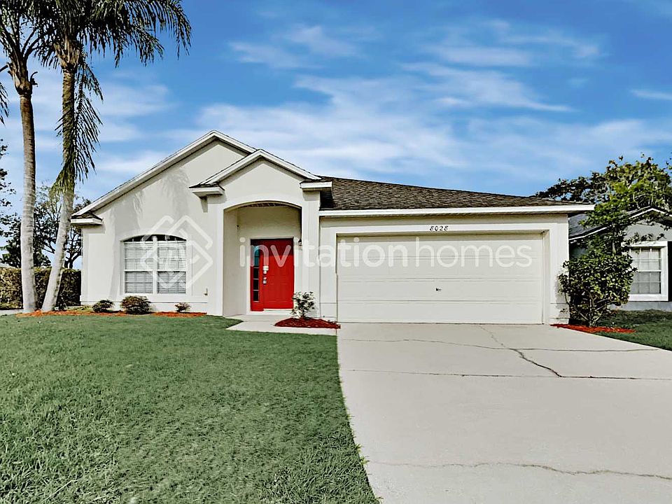 Home Features and Amenities: Air Conditioning, Fenced Yard, Garage, Kitchen Island, Long Lease Terms, Patio, Pet Friendly, Primary Bedroom on Main, Single Story House, Smart Home, Tile, Walk in Closet, W/D Hookups, and professionally managed by Invitation Homes.