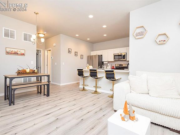 Welcome home to this architectural gem in the highly desirable Falcon Meadows at Bent Grass neighborhood! This home boasts clean lines, expansive windows, and an open-concept layout that maximizes natural light and space. Step inside to find a spacious, sunlit living area featuring high ceilings and premium finishes. The gourmet kitchen is a chef’s dream, outfitted with top-of-the-line stainless steel appliances a spacious eat-in kitchen complete with a custom backsplash, ample counter space, quartz countertops, and a large island with seating, and sleek cabinetry. The adjoining dining area offers the perfect setting for both casual meals and formal gatherings. Prepare to be amazed by captivating, unobstructed views of Pikes Peak and the front range a beautiful backdrop that promises serenity and memorable experiences. With access to the Club House, Community Center, Dog Park, Fitness Center, Hiking and Biking Trails, Playground Area, and Swimming Pool there is property leaves nothing to be desired! The surrounding area offers a peaceful, family-friendly environment while still being conveniently located close to shops, restaurants, Shriever AFB, Peterson AFB, First & Main Town Center, and the Powers corridor. This home truly offers the best of both worlds—luxury living in a serene, community-oriented setting, ideal for those seeking privacy and natural beauty in a quiet, picturesque neighborhood. - Hurry this home will not last long!