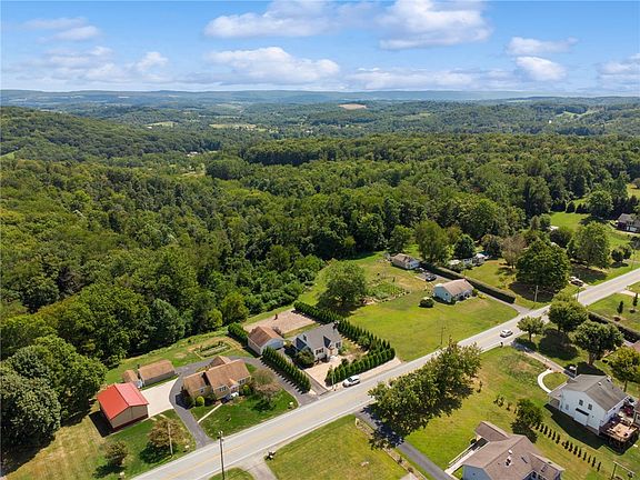 Move-in ready, this home boasts a stylish kitchen with granite countertops, ceramic tile flooring, accent lighting, and sleek black stainless-steel appliances. From the kitchen, exit onto the covered patio, to the large backyard with lush landscaping and wooded privacy. Enjoy breathtaking views of the rolling Appalachian Mountains! A cleared, leveled, mulched area is ready for your vision to fully embrace this spectacular vista. The main floor features refinished hardwood floors in the living room and bedrooms, plus a full bath with porcelain tile tub surround. The finished basement expands living space with a versatile game room, full bath, walk-in storage, and laundry area. Upstairs, a bright landing offers an ideal spot for a home office. An oversized 2-car detached garage includes electricity, lighting, automatic opener, and workshop space. Extras include 4K CCTV cameras, electric fence, and major 2019 updates, all in a private, country-like setting with stunning mountain views.