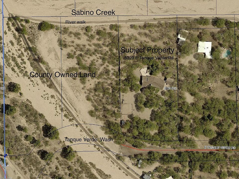 INCREDIBLE LOCATION, TREE LOVERS PARADISE! Old Ranch Charm! The value is the property and access to RIVERWALK and both SABINO CREEK FRONTAGE and TANQUE VERDE WASH! . POOL and ROOF need work ''as is''. This is a forest of MATURE MESQUITE TREES. No deed restrictions.PRIVATE WELL. Pima County land to the West for added privacy. TONS OF CHARACTER AND OLD RANCH CHARM. INTERIOR FEATURES CONCRETE FLOORS, 3 FIREPLACES, GOURMET KITCHEN WITH CHERRY CABINETS AND GRANITE SLAB COUNTERS, STAINLESS STEEL APPLIANCES, WOOD PLANKED BEAMED CEILINGS, BIG LIVING AND FAMILY ROOM, UPDATED BATHROOMS, DOUBLE PANE WINDOWS. Large attached carport and Large detached 2 car garage with workshop/storage room........MUST HAVE AN APPOINTMENT TO GO ON PROPERTY!