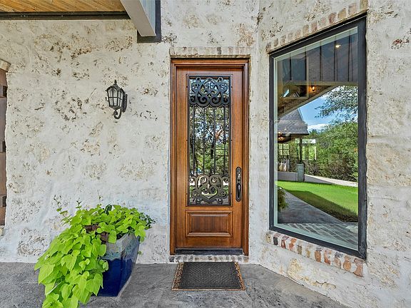 Discover your dream modern rustic home, a true sanctuary tucked away in a private setting surrounded by stunning trees and a genuine piece of paradise. Crafted by a master craftsman, this residence showcases exquisite details, including elegant laminate wood plank flooring and luxurious leathered granite countertops. The stained diagonal tongue-and-groove ceilings add warmth and character throughout the home. The heart of the home boasts a remarkable 20 foot breakfast island, complemented by custom-built cabinets that provide ample storage and style. Entertain in the family room, which features a striking 20+ foot fireplace, designed for both wood burning and gas logs, and enjoy the convenience of a wet bar. The gourmet kitchen is equipped with a gas range and a wine fridge, while the faux-finished walls add a touch of artistic flair. Retreat to the private master suite, complete with its own entrance and breathtaking views of the serene outdoor setting, including an in-ground pool with an enchanting water feature. The master bath is a sanctuary, featuring his and her vanities, a spacious walk-in shower, a soaking tub, a bidet, and an impressive walk-in closet with built-in organization. Convenience is paramount with two laundry rooms, ensuring that daily chores are a breeze. Upstairs, discover a unique private suite with doors that overlook the family room, perfect for a second living area, office, bedroom, or game room. This versatile space includes a wet bar, a full bathroom, and a deck that offers picturesque views of the lush, treed property and pool. Step outside to enjoy the covered patio that overlooks the sparkling pool or take a refreshing break in your very own private sauna. The garage adds even more value with a guest suite complete with two bedrooms, a full bathroom, and a small kitchenette. This remarkable home truly offers everything you could desire a private, tucked away, yet conveniently close to all that Waco has to offer.