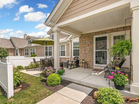 Don't miss this fabulous ranch condo so hard to find! Large private patio area greets you upon walking up to the front door. Step in and see large great room w/wood flooring and 4 Seasons room off foyer. Kitchen is spacious with ample cabinetry and long breakfast bar for casual dining. Quality, stainless appliances in the kitchen along with spacious pantry. Three bedrooms on the first floor with 2.5 baths. Master closet is large and bathroom nicely appointed. Laundry on first floor with plenty of space for additional storage. The lower level is finished and has a full bath.This home is complete with clubhouse, pool, and work-out area too! Move-in ready!