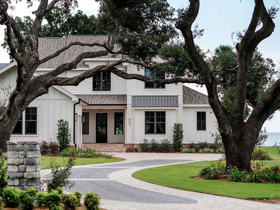 Experience the best of coastal elegance with this brand-new bayfront home, perfectly positioned along a rare sandy beach and across from the 8th hole of Pensacola Country Club. Move-in ready, this stunning 2-story residence blends timeless design with modern luxury. Inside, you’ll find 4 bedrooms, 3.5 baths, and a private office, all thoughtfully designed with hardwood floors, designer lighting, and an open layout. The gourmet kitchen is a chef’s dream, featuring commercial-grade stainless steel appliances, custom cabinetry, and plenty of space for entertaining. Enjoy the ultimate in outdoor living with a pool and hot tub, an outdoor kitchen space, and a spacious back porch overlooking the bay—perfect for relaxing or entertaining against a breathtaking waterfront backdrop. An attached two-car garage completes the picture of comfort and convenience. With its unbeatable location, luxury finishes, and rare sandy shoreline, this home offers a lifestyle like no other.