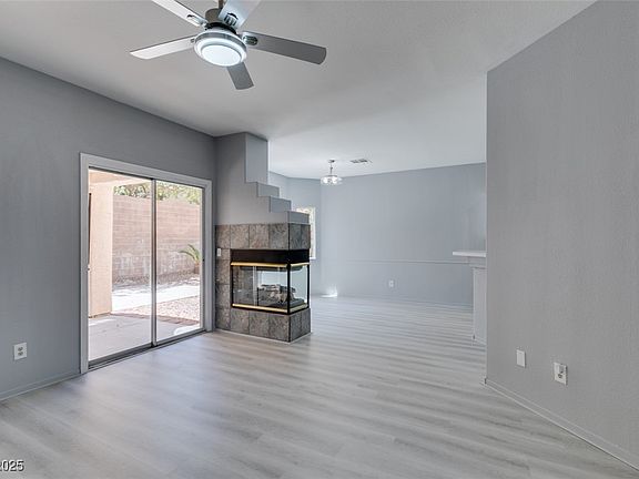 RECENTLY REMODELED! Bright and spacious 2-bedroom home with a large loft. The great room features a cozy three-sided fireplace. The chef's kitchen boasts a walk-in pantry and breakfast bar. The master suite offers a stunning view of the Strip, along with a bathroom that includes dual sinks, a shower, and a large walk-in closet. The second bedroom also comes with a walk-in closet. The home includes a generous laundry room with plenty of storage. Enjoy a lush backyard with a covered patio. Additional features include an alarm system, home warranty, and included gardener and all appliances.