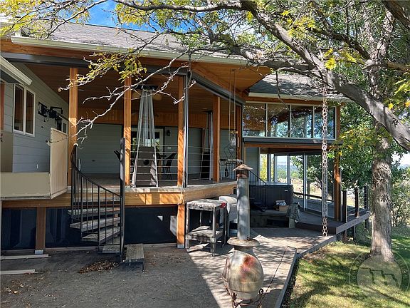 Hilltop Retreat on 10+ acres, adjacent to BLM state land w/ sweeping views and plenty of wildlife. Just 3 min to acclaimed Lockwood schools, 10 min to downtown, medical corridor. Custom built w/ real river rock accents, steel siding, 50 yr roof, knotty alder doors, & radiant floor heat. You'll love the covered patio w/ pine ceilings, porcelain tile, electric shades, room for hot tub, sliding glass doors. Adds to the living space year round w/ use of heat towers. Open floorplan w/ views from every window. ADA stairlift & elevator lift off deck make home handicap accessible. Walk-out basement w/ large bar, second covered patio. Two beautiful fireplaces w/ real river rock. Dream shop (45x88) w/ radiant floor heat, wood stove, office, and toilet. Land is fenced. Horse corral. Excellent, high-producing well. Laundry room sf (240) is not included in main floor. Detailed amenity list attached.