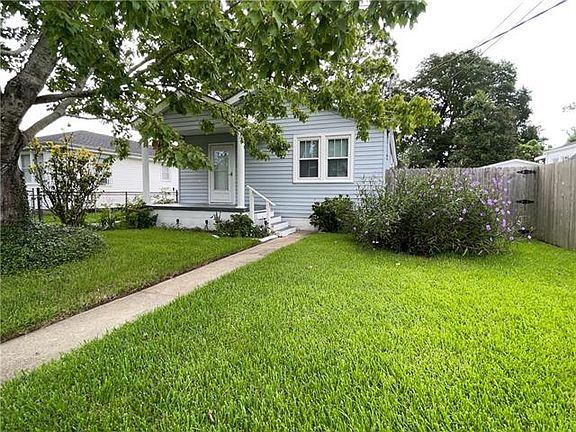 This charming 4 bed, 2 bath home offers 1,950 sq ft of nicely updated living space. Conveniently located just off the Expressway, you're only minutes from the heart of Downtown NOLA, both military bases including Federal City & NAS JRB, and 45 minutes to the new LNG Plant in Port Sulphur. This inviting home sits on a tree shaded lot with a welcoming front porch and a fully fenced yard. A long driveway leads to a single car garage for ample off-street parking. Inside, you'll find a spacious kitchen equipped with all essential appliances, an attached dining room with a built in buffet/bar display, a formal living room, expansive den with side yard access, plus an office space. You don't want to miss out on this move-in ready gem in a prime location!