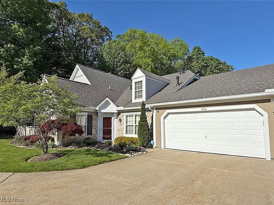 Beautiful Grande style Villa with a highly sought after side kitchen and private rear patio. The stamped concrete patio opens to designated green space with views of lush woods & wildlife. 1st floor offers gorgeous vaulted great room with cathedral ceiling, stone gas fireplace, skylights and open to lovely white kitchen and casual dining room. Many upgrades/updates throughout including beautiful wide plank French Oak look LVT flooring in casual dining and great room. The kitchen breakfast bar is perfect to enjoy entertaining and conversing with friends and family all open to the great room and outdoor patio. 1st floor primary suite with walk-in closet, updated carpeting, adjoining master bath with separate shower & private commode, double sinks and jetted tub. Current owner added an entrance door for privacy. The upper level delivers a wonder 2nd floor bedroom, adjoining walk-in closet and full bath. First floor laundry with built-ins, washer & dryer, utility sink and conveniently located off 2 car garage entrance. New hot water heater added in 2020 with pan and anti-scald, new AC 2022, new stainless refrigerator 2025 and more. Truly, a delightful living experience located close to downtown shops and restaurants, all city amenities, lush green space, peaceful and convenient living at its finest. Move in and enjoy!