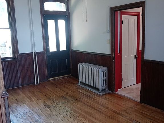 Enter living room with hardwood floors, large sunny windows, and wainscoting. Brontosaurus sized kitchen with a 10 foot tall original cabinet and cupboards. Step back in time to an 1800's chef's kitchen. Second floor boasts all natural wood floors beautifully restored with alluring natural grains, high ceilings, and large windows. Semi updated full bathroom with all new faux marble flooring. Home comes with a private fenced yard that needs the love of someone with a green thumb, and a covered rear porch perfect for relaxing on cool evenings. There is also off street parking, and toasty oil hot water radiator heat. Refrigerator, Washer, and Dryer included. Oven to arrive shortly, You can rent this historic charmer for $1,695 per month plus utilities.