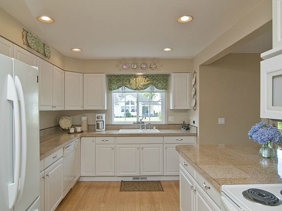 NW style home on a pond and 3rd green at Homestead Golf course. Southern exposure, a large stamped concrete patio, and professional landscaping make this the perfect home for entertaining and everyday living a joy. This home and property are in pristine condition with recent upgrades including a Trane furnace, Rinniai tankless hot water heater and granite countertops. The main floor master suite, fenced dog run, and abundance of storage are just a few of the features of this custom home.