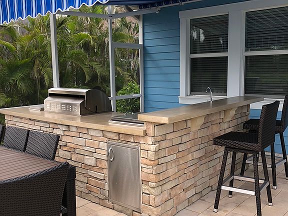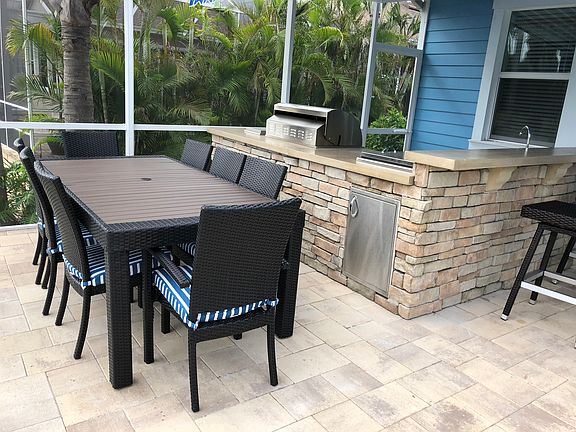 - Exterior Features: Irrigation System, Sliding Doors, Fenced, Outdoor Lights, Gutters / Downspouts, Screen/Covered Enclosure, Outdoor Kitchen