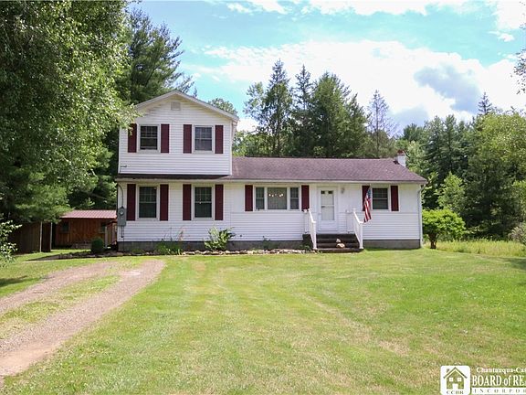 Looking for a little room to spread out in the Frewsburg School district? This 3-bedroom house sits on approximately 1.4 acres. The sellers heat the house with the pellet stove, there is a propane forced air furnace as well. The sellers put in a new sand filter septic system 3 years ago and around the same time had the electric service updated to a 200 amp service. The first floor has 2 bedrooms and a full bath and the second floor has the master bedroom. There is enough room on the second floor to put in a bathroom if you want. There is a nice-sized porch on the back that overlooks a quiet backyard. There is a fire ring in the backyard for having campfires. The shed is staying and is where they keep the pellets for the pellet stove. Have a Plan!