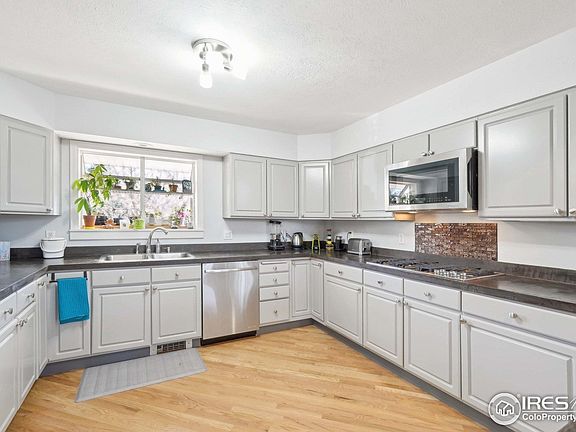 Nestled on an oversized corner lot in a quiet, tree-lined neighborhood, this charming and sun-drenched ranch home offers a rare blend of privacy, space, and convenience. Set on 1/3 acre with beautiful gardens and open views, this property provides a tranquil retreat, only minutes from South Boulder Rec Center, top-rated schools, Rock Park, and an abundance of open space and paved trails. Thoughtfully expanded and upgraded over the years, the home features a flexible layout with multiple bonus spaces perfect for working from home or relaxing with loved ones. The main living area opens to sliding doors and is filled with natural light, while the upper-level living/dining space adds architectural interest and warmth. The large updated kitchen offers ample storage, a generous dining nook, and a separate flex area perfect for hobbies or gear storage. The primary suite features a newly remodeled bathroom. Custom touches are found throughout, along with practical updates including a newer roof and a high-efficiency hot water heating system with 4 zones. Outside, the expansive yard is a gardener's dream-lush, private, and complete with an unregistered irrigation well for extra flexibility. Enjoy the calming energy of this sought-after Boulder neighborhood, known for its wide streets, larger lots, and easy access to everything-yet quietly tucked away from the hustle of town.