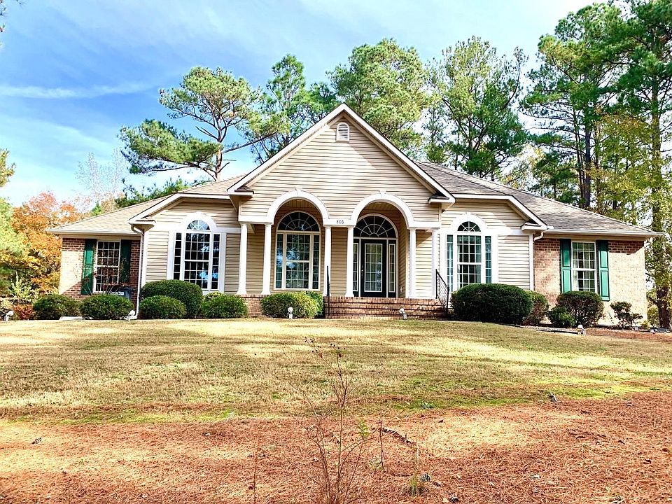 This one owner, one story home sits high on a oversized lot at Woodlake. Gorgeous hardwood floors and built ins are just some of the features. The open floor plan makes entertaining a delight and the back yard views are peaceful. Great bedroom space plus an additional office area. The garage features a two car plus a golf cart garage and the lower level offers great storage or a workshop area. So much to offer in this well taken care of home!