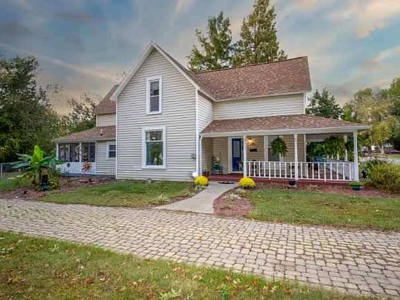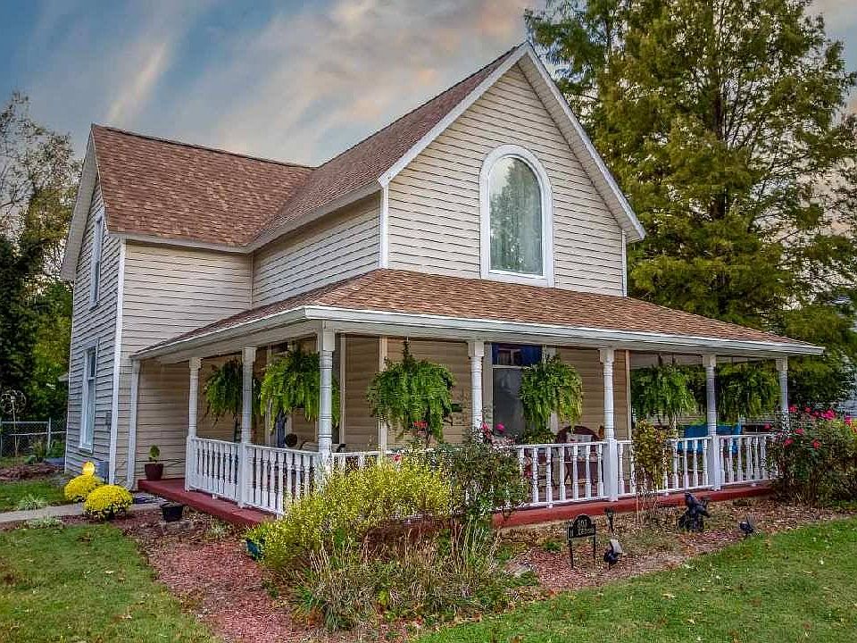This charming, move in ready 2 bed, 2 bath home is perfectly situated on a generous size lot with a fenced in back yard. The house and 2 car detached garage, have had new roofs in June 2025. The front of the house boasts a wrap around porch that adds curb appeal. A goldfish pond in the backyard makes for a unique feature to show your guests. Inside the home you'll find a large open foyer that is currently being used to display sports memorabilia. Both bedrooms are located on the second floor with the master featuring a full bathroom and a large L shaped walk in closet that doubles as office space. Located close to library and local dining and shopping. Perfect for someone wanting to downsize or a first time homebuyer!