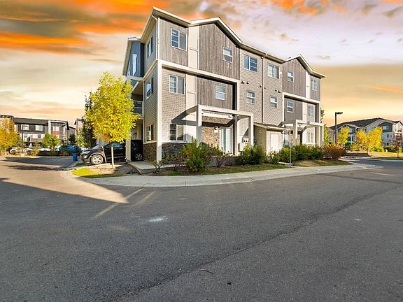 Gorgeous townhome with high-end finishing throughout. If you've been keeping your eye on this desirable complex you'll love everything this home has to offer. The tiled foyer level grants access to the attached garage and plenty of storage space. The main floor is bright and open with a stunning kitchen boasting dark brown cabinetry, granite countertops, upgraded appliances and a spacious island with seating and pendant lighting. The large window and balcony door allow for lots of natural light. Trendy laminate floors. The main floor is completed with a 2pc bathroom as well as a comfortable balcony off the front. On the upper floor you'll find 3 large bedrooms. The primary bedroom features a walk-in closet and 3pc ensuite with . Vaulted ceilings and a large window makes the second bedroom feel even more bright and open. The upper floor also features a shared 4pc bathroom and conveniently located laundry along with additional storage for linens and more. This area is fantastic for access to Stoney Trail, Deerfoot Trail, the airport, parks, shopping, transit and schools. book your showing today!