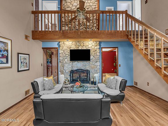 Live boldly in this 4 bedroom 3 Bathroom contemporary home with over 3,000 sq ft of unique, versatile living space. Enter to soaring ceilings, a stunning stone fireplace, skylights, and an open flow perfect for gatherings. The home offers an eat-in kitchen, den, sitting room, and two first-floor bedrooms—great for multi-gen needs.Upstairs, you'll find a spacious master suite plus an additional bedroom with its own sitting area and walk-in closet. The first floor also offers a separate entrance leading to two flexible rooms—ideal for office space, a work area, or multi-gen living. A finished basement with a bathroom adds even more usable space to this exceptional home. A truly distinctive home offering endless possibilities and room to grow.
