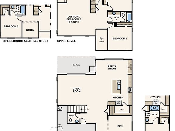 This beautiful home offers an expansive main floor, showcasing an open layout with a great room, dining area, and spacious kitchen with a walk-in pantry and a center island. You'll also find a multi-gen bedroom and bath on the first level with a separate interest. The primary suite is upstairs, featuring a large walk-in closet and a private bath with dual vanities, a walk-in shower, separate tub and a linen closet. Three additional bedrooms with 2 additional full baths complete this must-see plan. Options include: A multi-generational suite in lieu of the main-floor bed and bath A bedroom and study in lieu of the loft East Facing | 6,591 sq.ft