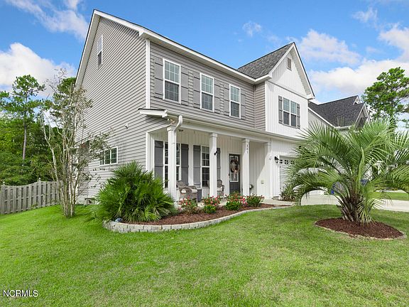 SELLER OFFERING $5,000 BUYER USE-AS-YOU-CHOOSE ALLOWANCE along with a $2,000 Lender credit with preferred lender!! Welcome to this exceptional 4-bedroom, 2.5-bathroom home in the desirable community of The Arbors in Surf City, just 5 miles from the beach and less than 30 miles from Wilmington and Jacksonville. Built in 2016 by American Homesmith, this spacious 2,377 SF property also includes a large unheated 3rd-floor bonus room, offering endless possibilities for extra space. The first floor boasts a bright, open floor plan with a separate dining room featuring an elegant chair rail and picture frame panel accents. The gourmet kitchen is a highlight, featuring stainless steel appliances, granite countertops, a tile backsplash, a pantry, and plenty of windows to let in abundant natural light. This space flows nicely and is open to the spacious family room. Step outside to enjoy the fenced-in backyard with a lovely view of the woods, perfect for privacy. Relax or entertain on the large back deck or unwind on the charming covered front porch. All four bedrooms are located on the second floor. The master suite is a true retreat with a spacious walk-in closet and a luxurious en-suite bathroom that offers dual vanities and a spa-like walk-in shower with tiled walls, a built-in bench, sliding glass doors, and multiple sprayers. This home offers the perfect balance of coastal living and modern comfort, all within a prime location. Don't miss the opportunity to call this house, home!