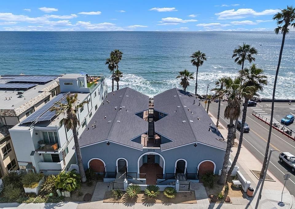 **Short Term Rentals (STR's) allowed in RT zone per City of Oceanside.** *Seller will provide credit to assist the buyer with a mortgage rate buydown, subject to an accepted offer.* Coastal Living at Its Best – Modern Oceanfront Condo at Casa Del Mar Wake up each day to panoramic ocean views and the sound of waves in this stylishly updated beachfront condo, ideally located in the sought-after Casa Del Mar community on The Strand in Oceanside. With the Pacific just steps away and Oceanside’s vibrant dining, shopping, and recreation scene at your doorstep, this is the ultimate coastal retreat. Inside, you’ll find a bright, open-concept layout featuring luxury vinyl plank flooring, fresh paint, and contemporary finishes throughout. The kitchen features quartz countertops, sleek white cabinetry, stainless steel appliances, and a designer tile backsplash. Relax in the spacious living area with sit-down ocean views, or retreat to the generously sized bedroom complete with a built-in desk—perfect for working from home or unwinding after a day at the beach. The modern bathroom features a marble-topped vanity, gold fixtures, and a glass-enclosed shower, offering a touch of everyday luxury. Additional features include dual-pane windows, recessed lighting, ceiling fans, an updated furnace, and custom closet organizers for optimal storage. This gated boutique community of just eight condos offers secure garage parking with storage, on-site laundry, and a dedicated beach gear room. Enjoy one of the largest oceanfront lawn areas on Pacific Street—an ideal setting for gathering with friends and family or simply soaking up the sun and sea breeze. Live the Oceanside lifestyle you’ve always dreamed of, with surfing, the boardwalk, coffee shops, fitness studios, and the harbor all just outside your door. This is your opportunity to own a move-in ready, modern beach home in one of Southern California’s most desirable locations.