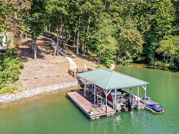 Outdoors, enjoy a covered porch overlooking the peaceful cove, and a firepit by the water’s edge. A gentle sidewalk leads easily to the beautiful coverd hip dock, while a walk-in crawl space provides even more storage. *2 jet ski ports convey with purchase.