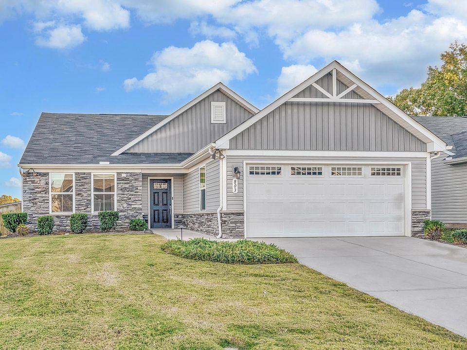 Welcome to this like-new 3-bedroom, 2-bathroom single-family home perfectly positioned on a desirable corner lot just off Highway 9. Enjoy the convenience of being only a few hundred yards from grocery stores, dining, and everyday amenities — all while tucked into a quiet neighborhood. Inside, you’ll find a bright open-concept floor plan with luxury vinyl plank (LVP) flooring throughout. Designed with accessibility in mind, this home is ADA compliant, featuring wider door frames and minimal transitions and thresholds for easy movement throughout. The modern kitchen boasts quartz countertops, a spacious eat-at island, and a pantry — perfect for entertaining or family meals. Each bedroom offers generous storage with custom-built closet systems designed for maximum organization. Step outside to a flat, private backyard surrounded by a full privacy fence, ideal for entertaining friends and family or enjoying peaceful evenings outdoors. With its prime location, thoughtful design, and move-in-ready condition, this home offers the perfect blend of comfort, accessibility, and convenience in one of Boiling Springs’ most sought-after areas.