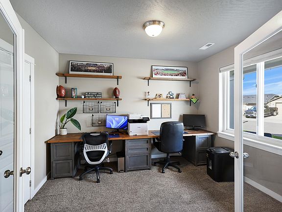 This beautifully updated 5-bedroom, 2.5-bath home combines modern upgrades with a spacious, open-concept layout. Built in 2016 and remodeled in 2025, this home showcases thoughtful improvements throughout, including new Andersen windows (2024), energy-efficient solar panels (2023), and a luxuriously remodeled master bathroom. The great room concept connects the living, dining, and kitchen areas ideal for entertaining and everyday living. The kitchen features granite countertops, stainless steel appliances, updated LVP flooring, and ample cabinetry for storage. Upstairs, four generous bedrooms provide flexibility for family or guests. Downstairs bedroom currently used as an office with custom built desk. The primary suite offers newly remodeled ensuite bathroom with custom-built shower featuring modern finishes and high-end details. Enjoy your spacious backyard, complete with a covered patio, perfect for relaxing or hosting gatherings. Just a blocks from neighborhood park, makes this home a must see.