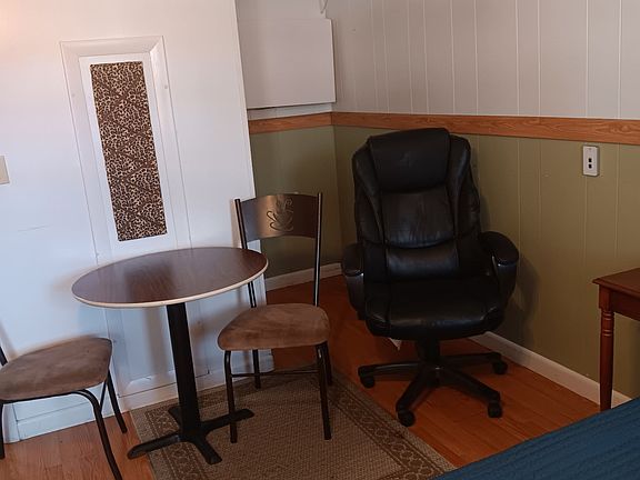 This studio unit comes with a king bed, a stove top, and microwave. Heat, electricity, water, cable and Wi-Fi are all included in the monthly rate. Pets are considered with a fee.