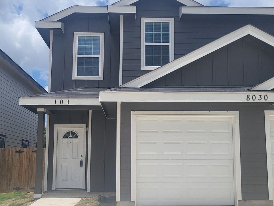 NEW COMMUNITY...ENTRY WITH HALF BATH AND GARAGE ACCESS..BEAUTIFUL POLISHED NATURAL CEMENT FLOORS DOWNSTAIRS..CUSTOM PAINT..OPEN LIVING ROOM WITH DINING AND OPEN KITCHEN..GRANITE COUNTER TOPS AND EXTRA CABINETS..BREAKFAST BAR AND STYLISH BLACK APPLIANCE ..ALL BEDROOMS UPSTAIRS WITH CARPET..LOTS OF WINDOWS FOR NATURAL LIGHTING..GARAGE OPENER TO SINGLE CAR GARAGE ALSO HOLDS WASHER AND DRYER CONNECTIONS..BACK YARD WITH PRIVACY FENCES..CONVEN TO FT SAM AND JOINT BASE. TENANT PAYS UTILITIES. PETS NEGO /BREED RESTRICTIONS APPLY