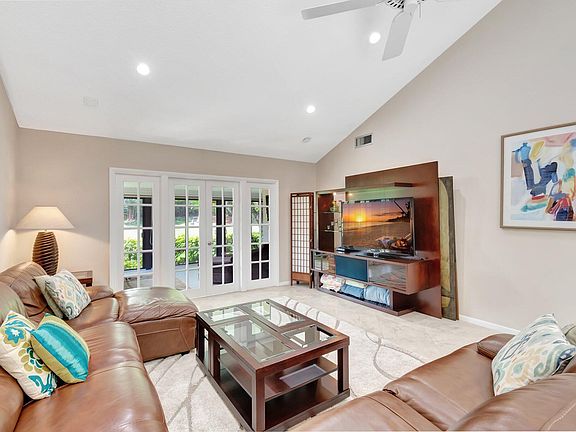 Welcome to this beautifully maintained and thoughtfully updated 2BR/2BA Villa in The Greens of Boca Lago! This light-filled home boasts soaring vaulted ceilings, open-concept living and abundant natural light. Enjoy modern comforts and peace of mind with impact glass throughout, a 2024 upgraded electrical system including panel, outlets, and recessed LED lighting, humidistat and a new 2024 concrete tile roof. The massive enclosed Florida Room with panoramic golf and garden views features multiple impact sliders and A/C, creating the perfect space to relax or entertain year-round. The spacious Kitchen is a chef's delight with granite countertops, 42'' wood cabinetry with pull-out drawers and lazy Susan, stainless steel Frigidaire appliances, breakfast area and a picture window over the double sink. Sliders open to a private patio, perfect for morning coffee or evening grilling. The adjacent Formal Dining room makes entertaining seamless. Retreat to the oversized Primary Suite offering serene views, direct access to the Florida Room, and an abundance of storage including a walk-in and multiple closets, all with custom built-ins. The luxurious Primary Bath features floor-to-ceiling tile, a deep soaker tub, stand-alone shower, and dual-sink vanity. The Guest Bedroom includes two closets, one a generous walk-in, and opens to a private outdoor patio space. The Guest Bath is equally impressive with a walk-in shower and floor-to-ceiling tile.The covered Carport and Driveway comfortably fit 4 cars and a golf cart. The Greens of Boca Lago is a gated, optional membership, 55+ country club community offering a clubhouse, resort-style pool, and beautifully landscaped grounds. Ideally situated in West Boca, just minutes from top-tier dining, shopping, entertainment, airports and more. Don't miss this rare opportunity to own a turnkey home with unmatched views and value in one of Boca Raton's most desirable communities!
