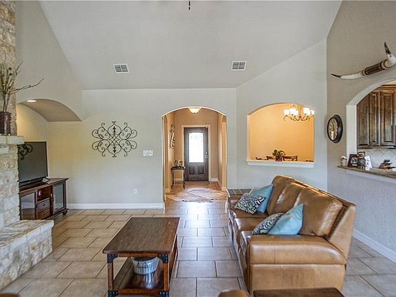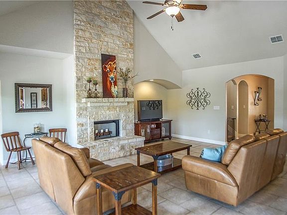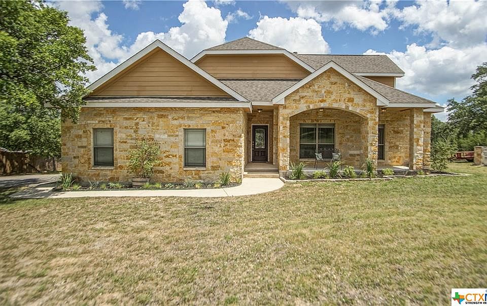 Beautifully maintained 4 bedroom 2.5 bathroom home on 1.377 oak studded acres. All bedrooms downstairs. Open floor plan with high ceilings throughout. Fresh interior and exterior paint, new carpet in bedrooms and game room, new Samsung appliances in 2019. Upstairs game room with 1/2 bath would make excellent home office space! Floor to ceiling rock fireplace. Master suite is situated away from the secondary bedrooms. Beautiful en-suite includes double vanity, garden tub, large shower and walk-in closet. Back patio overlooks flagstone patio with built in gas grill. Fully fenced backyard with separate dog pen. Outdoor playhouse can stay! Don't miss your opportunity to live out your hill country dreams in this one of a kind home.