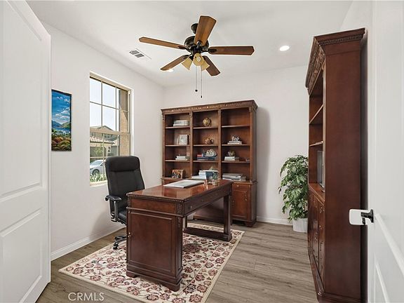 Beautiful Monterey Model detached single family home in the highly sought after 55 plus community of Auberge at Del Sur. One of the largest & semi private lots in Auberge. The home has an additional room that can be use as a 3rd bedroom, office, or your choice. Open floor plan joining the kitchen, dining area and great room. The Kitchen boasts of a beautiful granite island & countertops, stainless steel appliances, tile floors and plenty of European-style white thermofoil cabinetry and raised panel doors. This amazing home comes with the upgraded Del Sur Room with automatic awnings, ceiling fans w/ light and a french door access from the master bedroom, laundry room with a sink & side by side washer and dryer, pre-wired for solar panels, whole house water filtration system, tankless water heater, low maintenance backyard with some fruit trees, backyard fully paved, new interior paint, just installed Luxury Vinyl Flooring throughout the home, Solar Tube in kitchen and entryway, whole house fire sprinklers. A 2 car garage that offers storage cabinets and overhead storage racks. Auberge residents have full access to all of the Del Sur amenities that include 14 parks, 11 pools and miles of walking trails. private Del Sur Room brings inside living to the outside with the automatic awnings, lightning and fans. This community has an impressive clubhouse that offers a fitness center, resort style heated swimming pool with spa, dog park, walking trails, bbq area, pickleball courts, and a tot lot for the visiting family. Auberge is center to many shopping centers and entertainment, fast and easy access to highways.