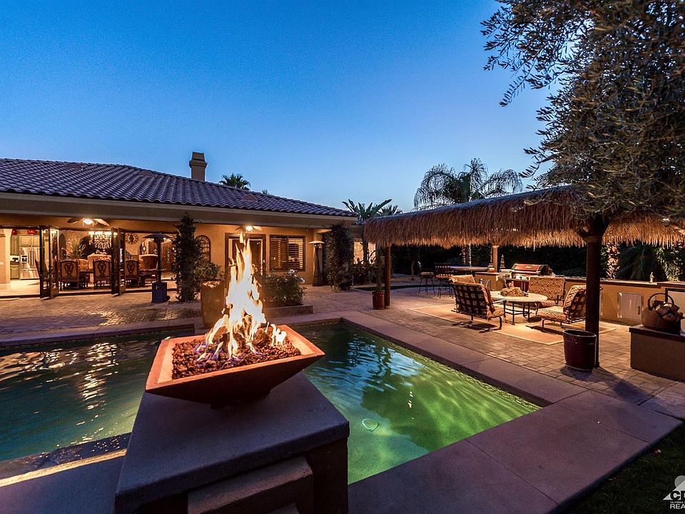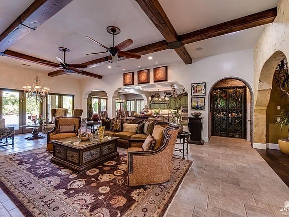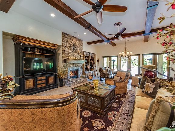 This highly customized home, with 4,000+ sf has achieved that lovely Tuscan flair. With 4 bds/ 3.5 ba, this home features high end finishes from the minute you enter. From the exposed beam ceilings to the faux finished walls, brick arched doorways & hallways, this home has so much to offer. Featuring a chef's kitchen with unique unpolished chisel edged granite countertops, 2 stainless steel ovens, 6 burner gas stove, contrasting rich wood cabinets with antique finish, & a large center island with extra sink. Located off the living area is a wine closet/bar with beautiful scrolled iron gates. The large great room with stacked stone fireplace is open to kitchen & dining areas & features 5 sets of French doors opening to the spectacular backyard which features a large covered loggia, salt water pool with fire pots & built in stools, spa, misting system, & a Palapa w/BBQ, 5 burner stove, 2 sinks, fridge & dining area w/ fireplace. This home is beyond anything you've seen in DRE