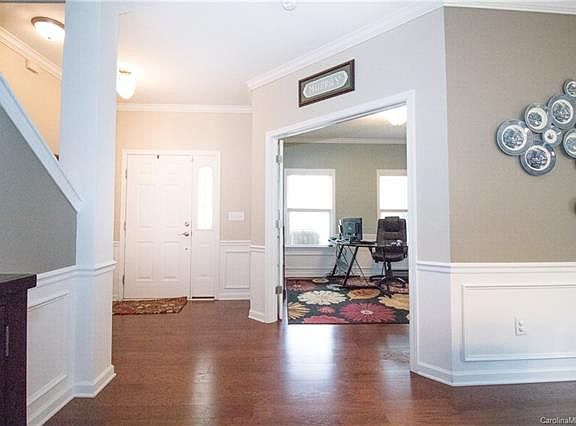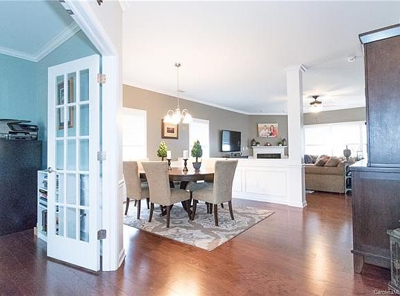 Beautiful 5 bedroom, 3.5 bathroom home in Wakefield subdivision in Indian Land, SC. Open 1st Floor includes office with french doors, formal dining area, living room and eat-in kitchen. Kitchen has granite countertops and oversized island with seating. Storage abounds from the cabinetry to the large walk-in pantry. Architectural features include crown molding, chair rail, wide plank hardwood floors and gas fireplace as well as integrated surround sound in living room and kitchen. The 2nd Floor boasts 4 bedrooms including a large master suite and a flex space currently utilized as a family room. The finished third floor offers additional bonuses of a third rec space with built-in bar, 5th bedroom and full bathroom. The backyard was overhauled in 2016 with large paver patio, built-in fire pit and privacy fence. Outdoor speakers and wiring/tv bracket finish this space. House was professionally painted in April 2018. Community offers green space and pool.