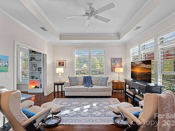 With a private, fully-equipped and functional lower level second living quarters AND magnificent SUNSET views, this exceptional home offers a combination of functionality, comfort and beauty. Perfectly situated on one of the most desirable lots in this 55+ community of The Courtyards of Huntersville, the property enjoys unmatched privacy with no home directly across the street or to the side and is quietly tucked away at the back of the intimate neighborhood. A major highlight is the thoughtfully designed LOWER LEVEL SUITE, ideal for multigenerational living or guests. This private space has its own exterior entrance and includes two living areas, a dining area, a full kitchen with new quartz countertops and sink, full-size appliances and an oversized pantry. The suite also features a spacious bedroom with a walk-in closet and pond views, a full bath with a new vanity, stackable, full-size washer and dryer, and a private patio overlooking a tranquil reflection pond and water feature. The main level is filled with natural light thanks to the absence of an adjacent home, as well as skylights in the kitchen and primary bath. The layout includes a welcoming foyer, a sunroom/home office, living and dining rooms, a spacious kitchen, laundry room, and a full guest bath, along with a primary suite and an additional guest bedroom. An upgraded kitchen boasts quartz countertops, a subway tile backsplash, a new range and dishwasher, and a pantry cabinet with pull-out shelving. The optional sunroom/office features a custom built-in desk with a quartz countertop, lockable drawers, storage, slide-out printer trays, and a built-in bookshelf—perfect for working from home. An enhanced laundry room includes upper and lower custom cabinetry with glass doors, a deep sink, subway tile backsplash, and a built-in beverage refrigerator creating a fully functional mini beverage bar. Both main-level baths have been updated with new quartz countertops, deep sinks, and faucets. The primary bedroom is a true retreat, complete with a spacious Closets By Design custom closet system and direct access to a screened and covered deck area. A new screened porch off the primary bedroom features two custom retractable screens, and elegant plantation shutters with dual control have been installed throughout the home. A maintenance free, elevated deck with multiple seating and dining spaces, spans the side of the home and overlooks a natural area where breathtaking sunsets will be enjoyed. The two-car garage offers epoxy-coated, non-skid flooring and a convenient wall-mounted vacuum unit. Pull down garage stairs leads to an incredible amount of storage above the garage. Five ceiling fans have been added in living spaces and bedrooms. The home's exterior was freshly painted in 2025 and features an attractive combination of fiber cement and stone. The community offers a wide range of amenities, including a clubhouse for social events with a full kitchen, fitness facility, and swimming pool. Sidewalks and streetlights, natural areas, extensive landscaping and pond add to the neighborhood’s charm. The HOA maintains all landscaping (except private courtyards) and the exteriors of the homes so homeowners only need an HO6 insurance policy. Two kitchen refrigerators, beverage refrigerator and two washer and dryers are included. Easy access to Beatties Ford Road, Gilead Road, Hwy 73 and I77, Birkdale, Blythe Landing, Jetton Park, Marinas, Shopping and Dining. In close proximity to hospitals/medical centers. The Courtyards of Huntersville homes are classified as condos by the Town of Huntersville but live like single family homes.