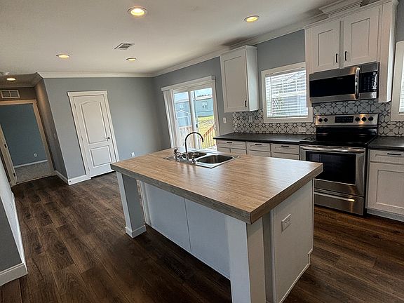 - Exterior features: 3-Car Driveway, Flower Beds, Kitchen Island, Open Floorplan, Shed